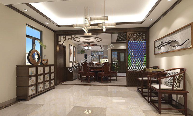 180平米四居室新中式风格餐厅吊顶设计效果图