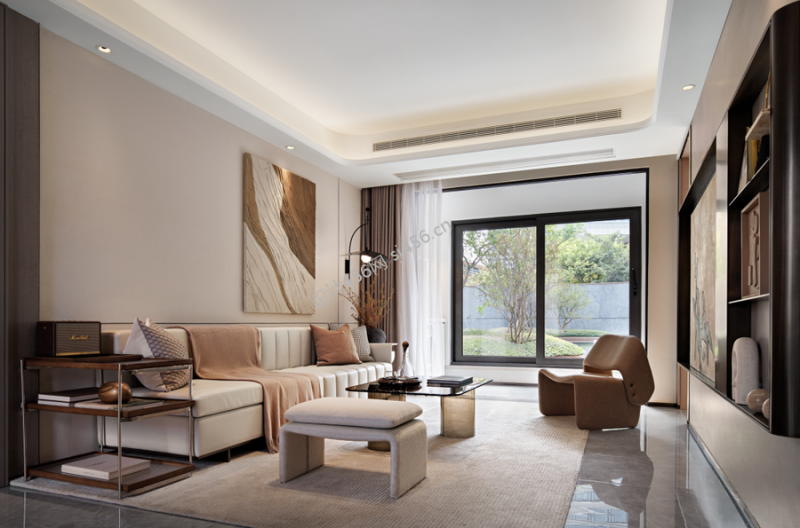 隆源国际城135平轻奢风格三居室装修案例风效果图