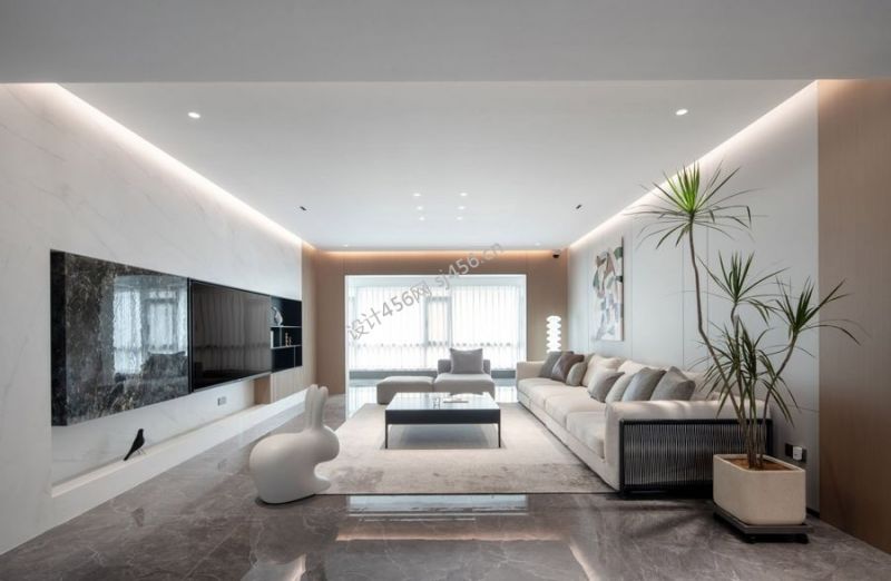 隆源国际城135平轻奢风格三居室装修案例风效果图