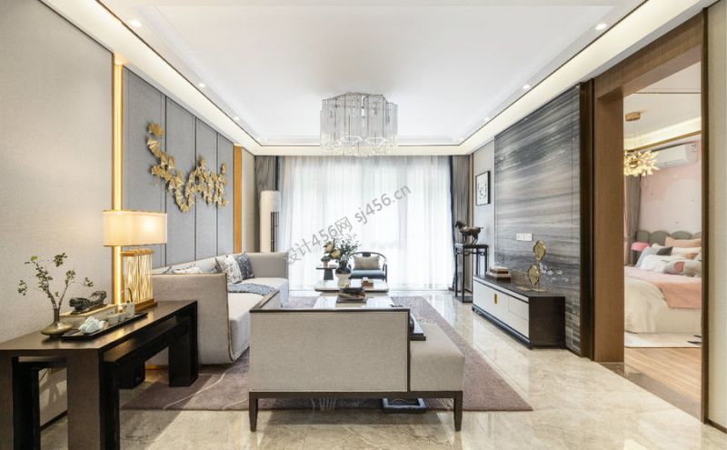 招商依云曲江128平中式风格三居室装修案例风效果图