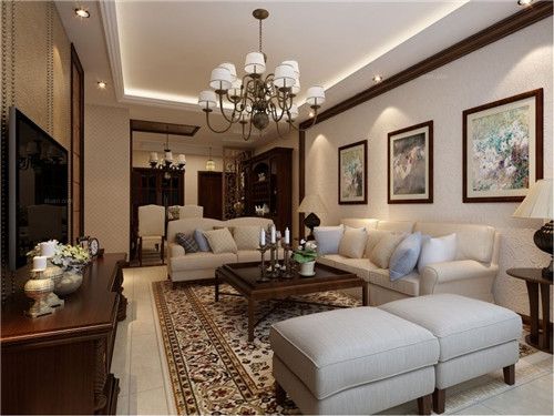 客厅电视墙的设计一般都是与顶面的吊顶布局相呼应的,通常在吊顶上都会安装灯,因此还需考虑到墙面的造型与灯光是否相呼应,避免强光直接照射在电视机屏幕上,避免在观看电视时眼睛过于疲劳。