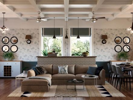 万科理想城132平美式风格三居室装修案例风效果图