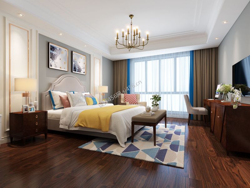 山水岭秀现代风格90平米装修案例三居室风效果图