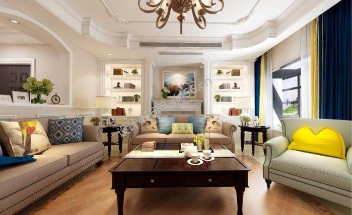 山水岭秀现代风格90平米装修案例三居室风效果图