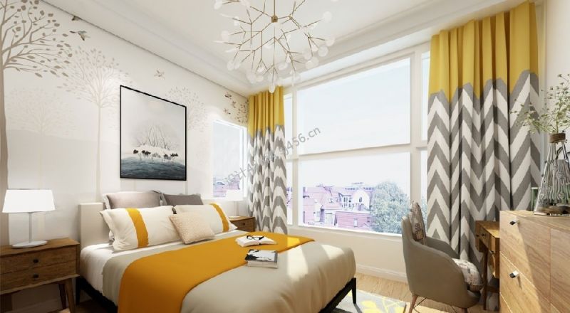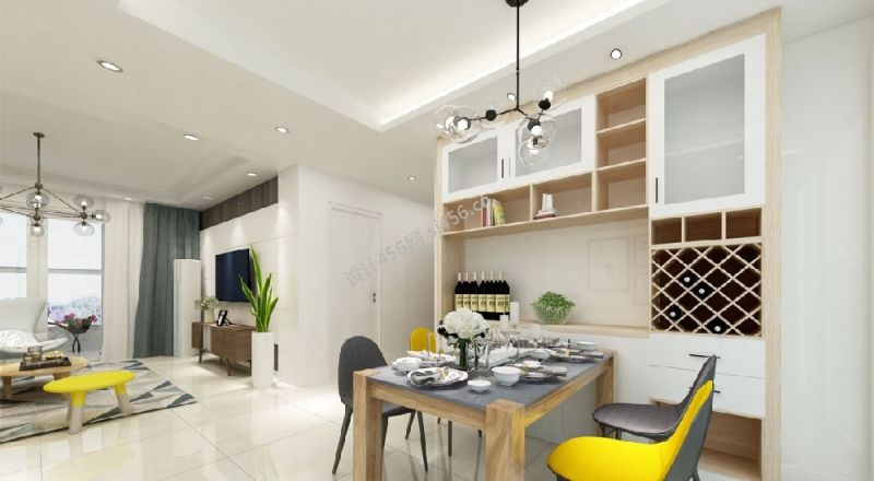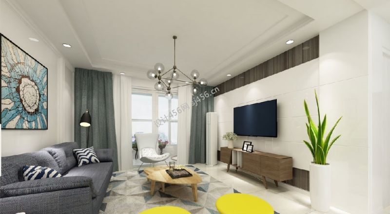 山水岭秀现代风格90平米装修案例三居室风效果图