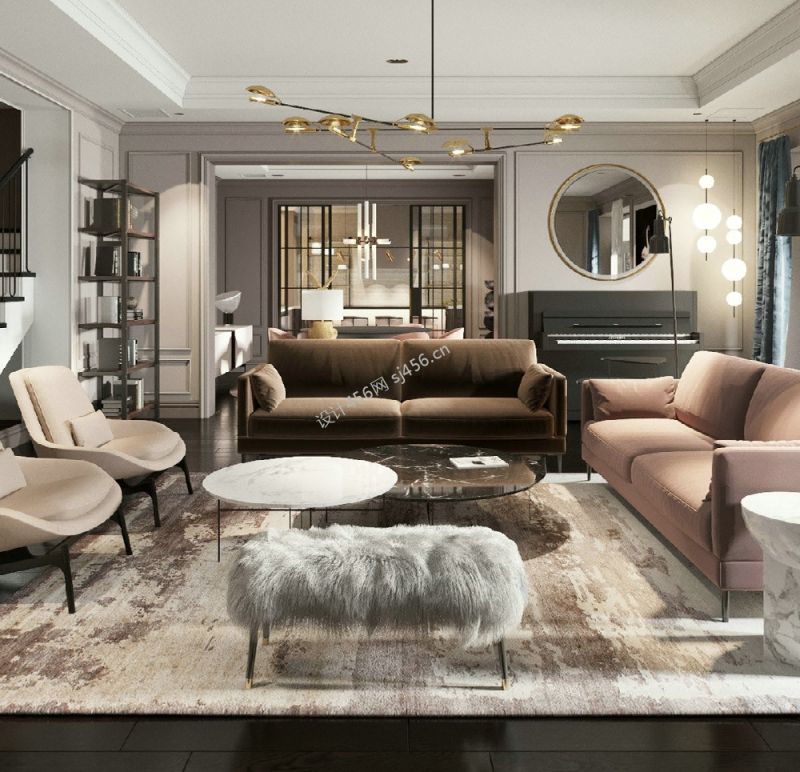 名城雅居轻奢风格136平米三居室装修案例风效果图