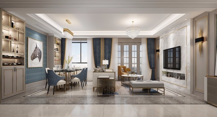 世茂璀璨倾城现代中式风格137平米三居室装修案例