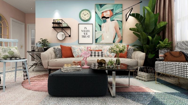 北欧风格87平米二居室客厅沙发背景墙装修图