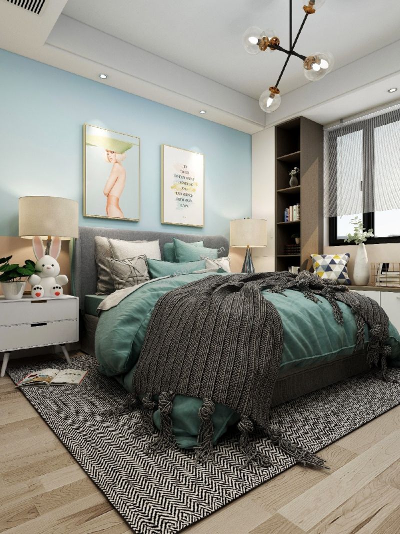 馨悦茗园北欧风格86平米二居室装修案例风效果图