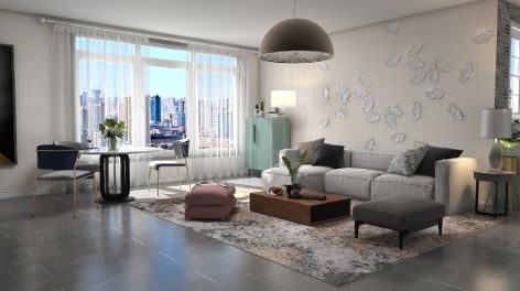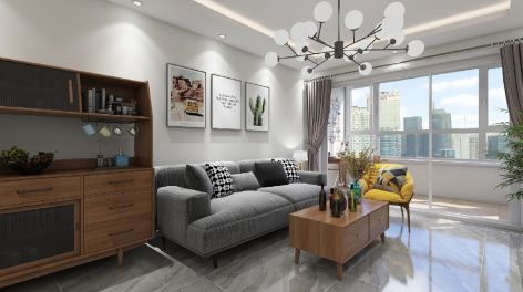 立丰城市生活广场简约风格78平米二居室装修案例风效果图