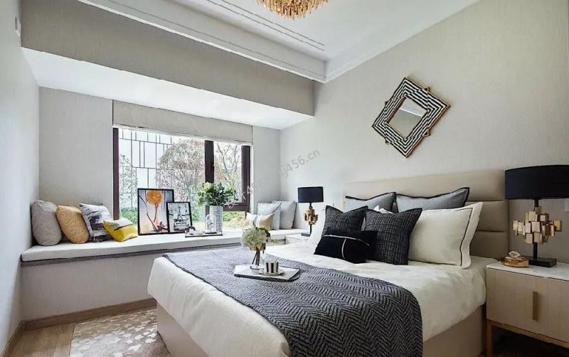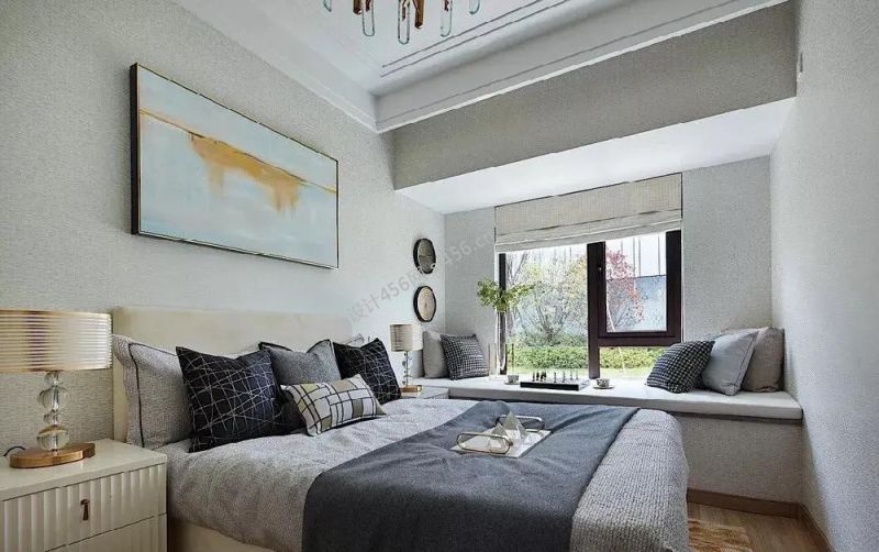 现代风格二居室卧室床头背景墙设计装修图