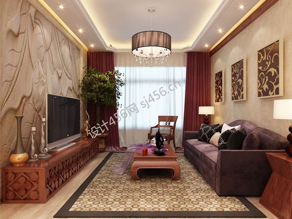 富强花园中式143平四居室装修案例风效果图