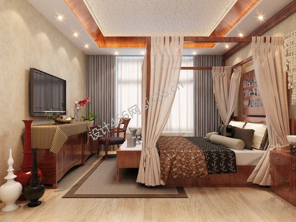 庆坊·玺岸中式古典114平三居室卧室装修案例