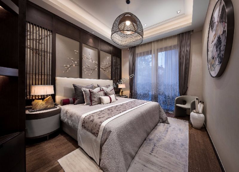 逸翠园三期280㎡新中式四居室装修案例风效果图