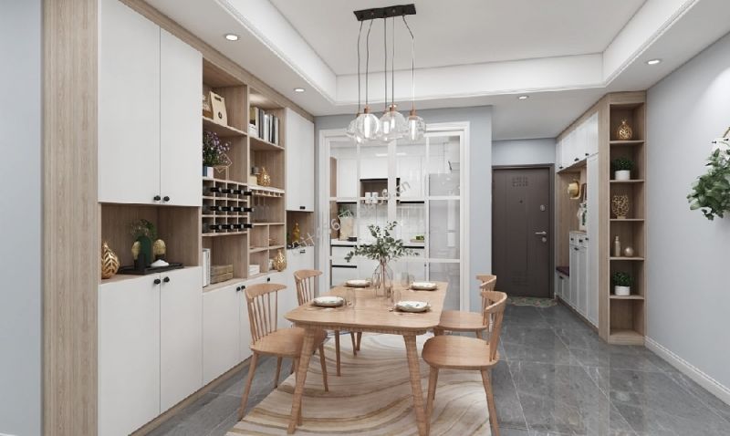 现代风格118平米餐厅酒柜墙装修设计图片
