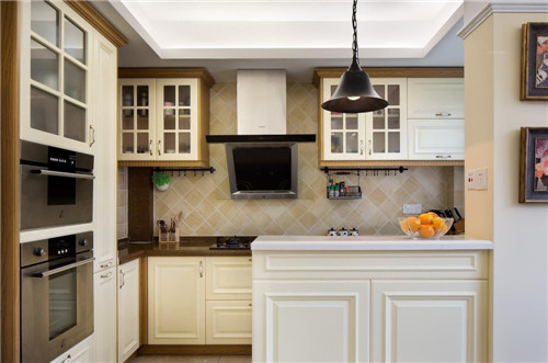 1、通常来说,这类样式的装扮时敞开的,并且还设有一个便餐台,具备功用强盛又简便耐用的厨具设备,比方说水槽下的残渣粉碎机,烤箱等,另外若是需要容纳双开门冰箱,一定要预留足够的位置及操作台面,当然在装饰上也很有讲究,比方说仿古面的墙砖、实木门扇等等。