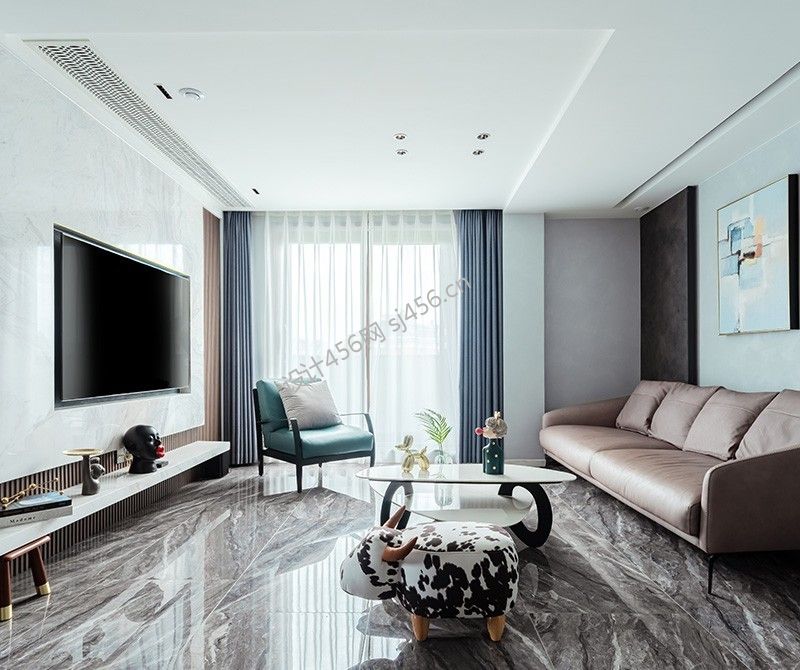 富力白鹭湾三居129方现代风格装修案例风效果图