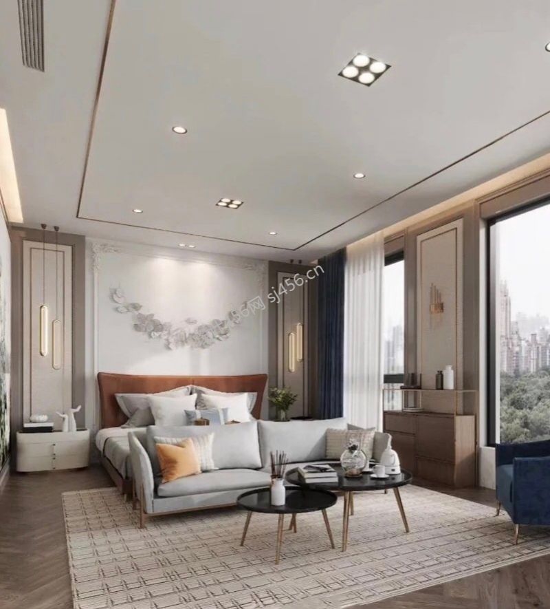 143平米现代简约别墅卧室吊顶装修效果图
