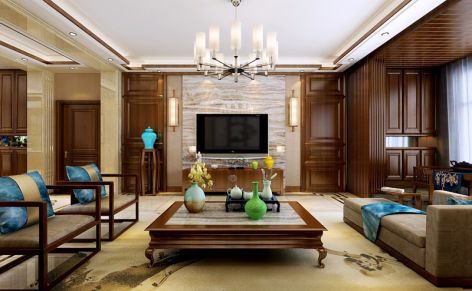 雁栖玫瑰园中式现代风格四居室装修案例风效果图
