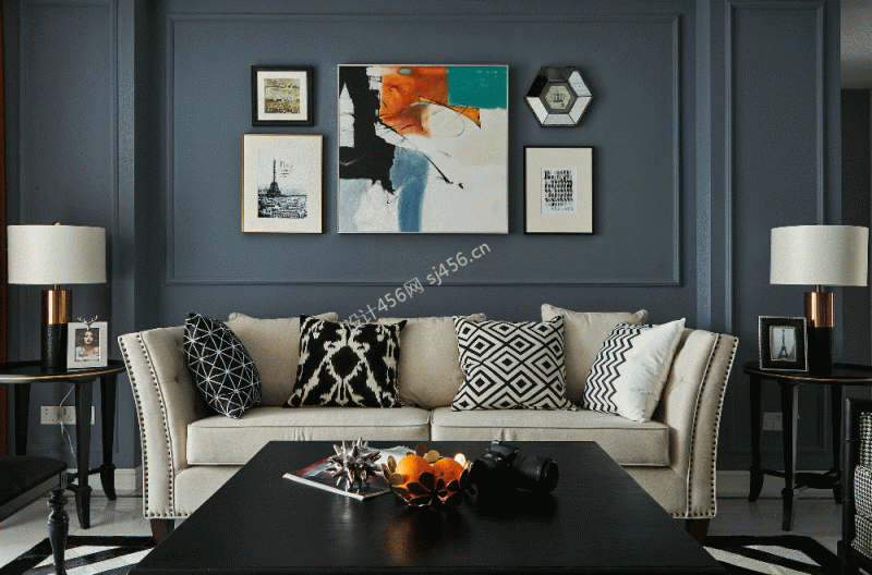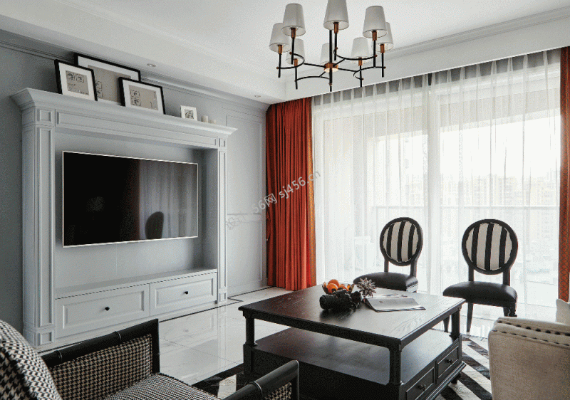 天正幸福里118平米现代美式三居室装修案例风效果图