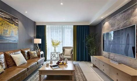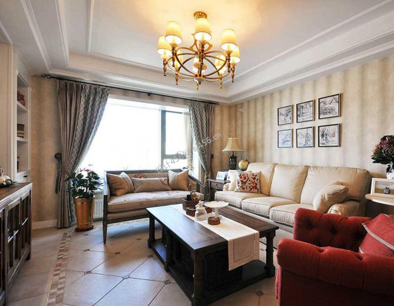 三居102平美式风格客厅设计图片欣赏