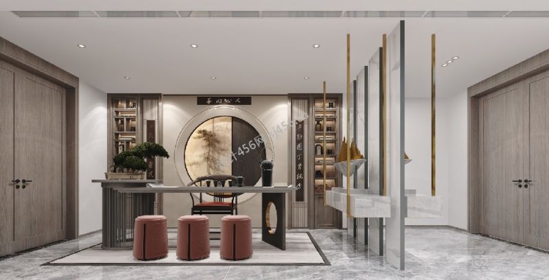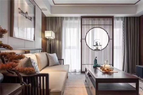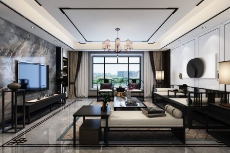 中铁琉森水岸平层156平新中式风格装修案例风效果图
