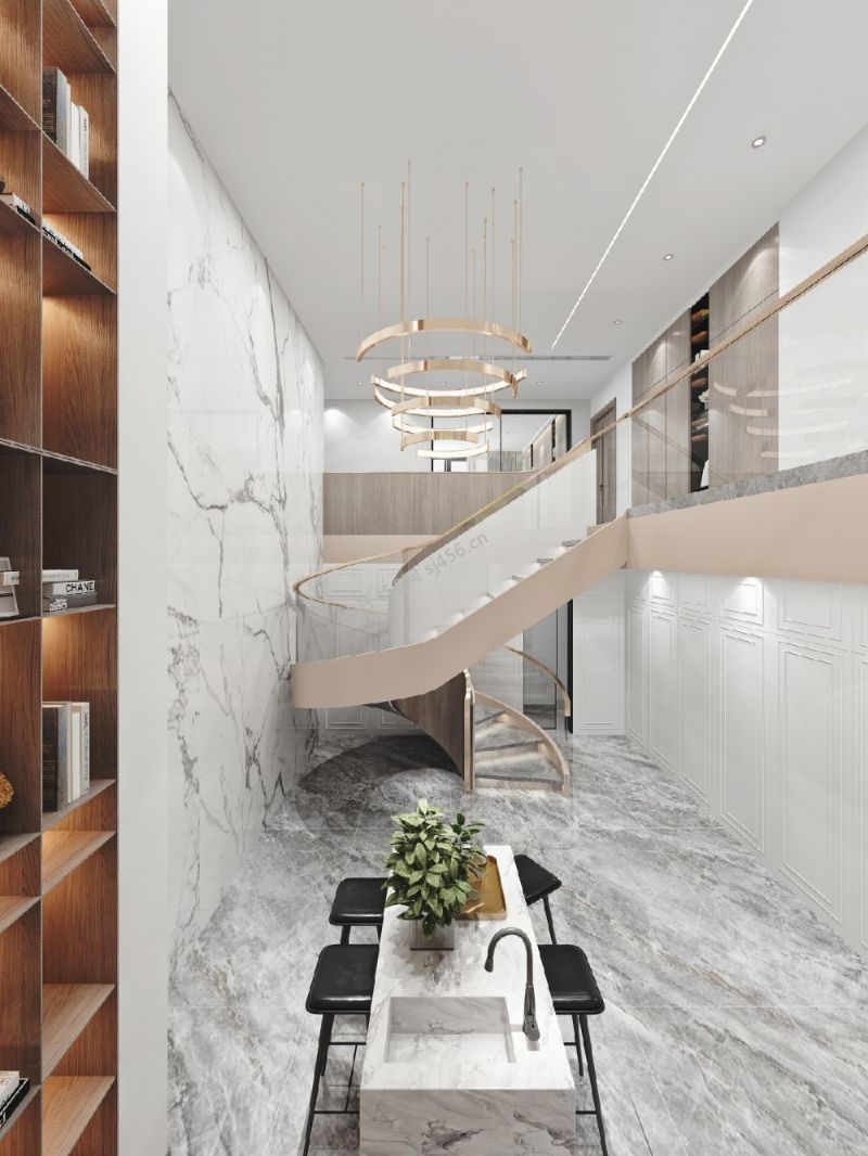 大华曲江公园世家别墅366平现代风格装修案例风效果图