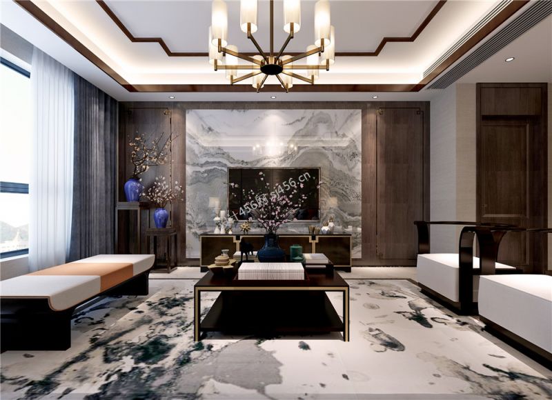 2020现代中式客厅装修图片 2020大理石电视墙图片