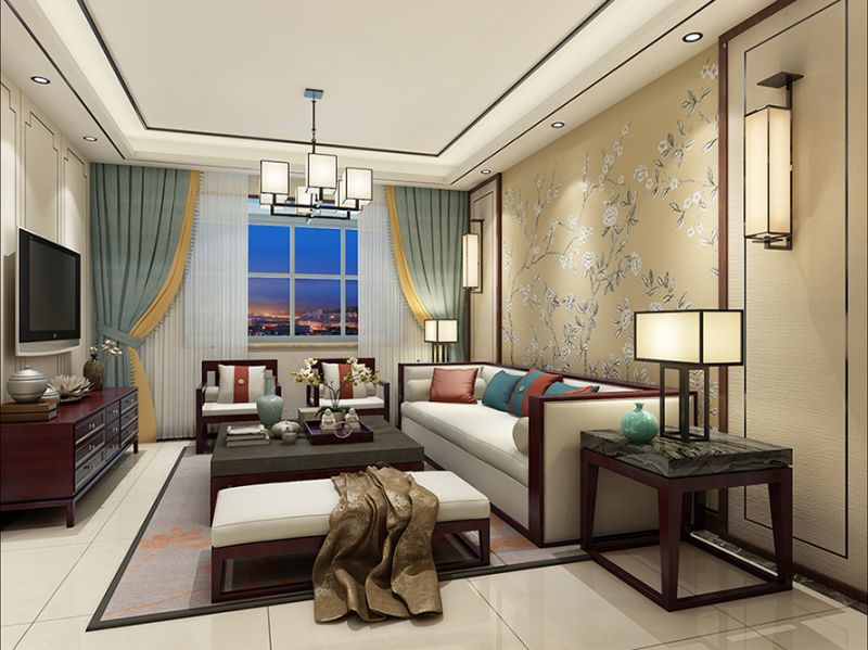 西安公元府邸新中式风格98平米设计方案 西安欧浓装饰