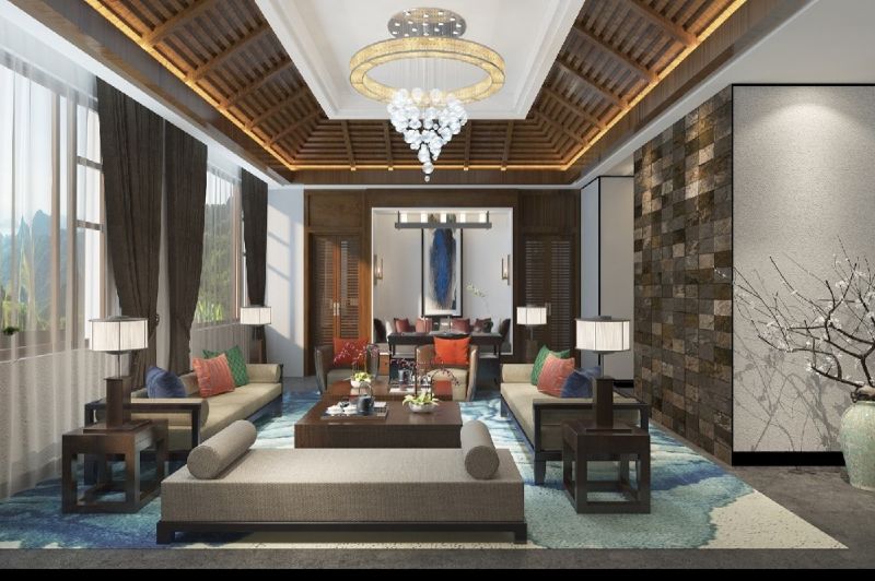 阳明温泉小镇中式风格280平米别墅装修案例