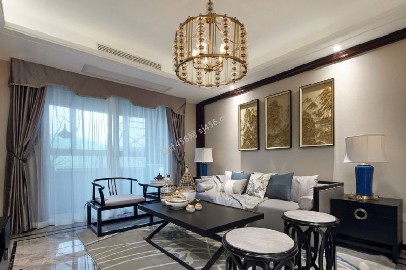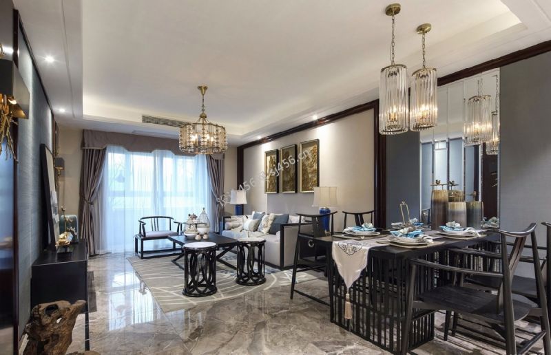 中贸广场140平米新中式风格三居室装修案例风效果图