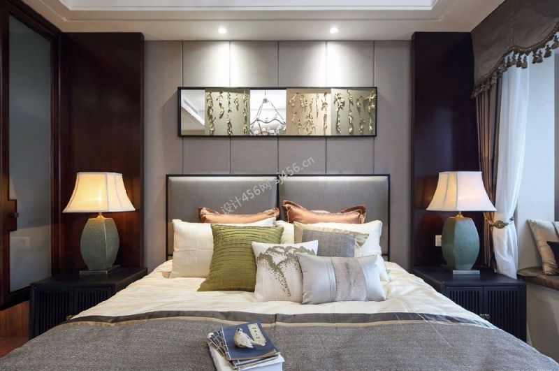 天地源曲江香都107平米新中式风格三居室装修案例风效果图