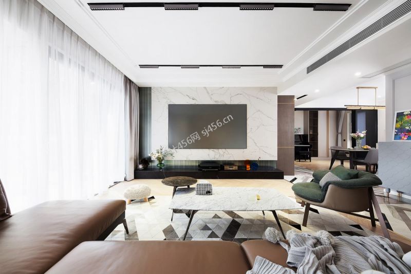 保利和光尘樾123平现代风格三居室装修案例风效果图