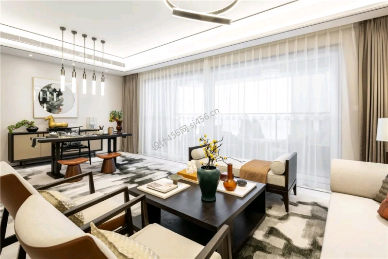 东尚小区128平轻奢风格三居室装修案例风效果图