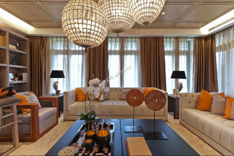 东尚小区128平轻奢风格三居室装修案例风效果图