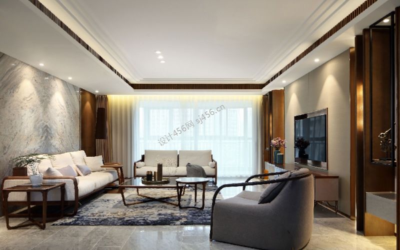 东泰城市之光99平米现代中式三居室装修案例风效果图