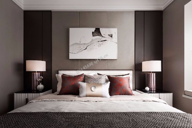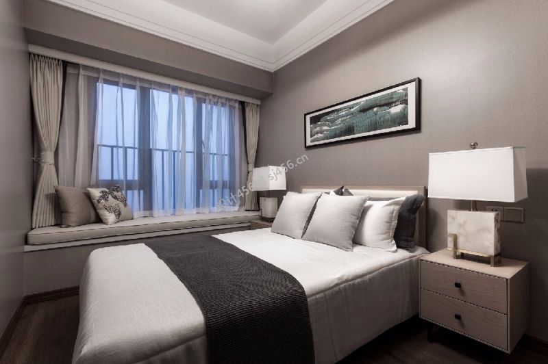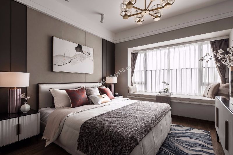 绿地曲江名城110平米现代中式三居室装修案例风效果图