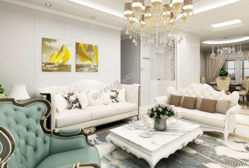 简欧风格164平四居室客厅吊顶灯设计效果图