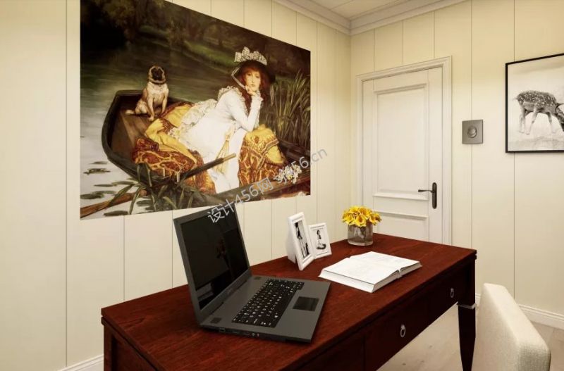 简欧风格164平四居室书房背景墙设计效果图