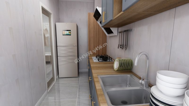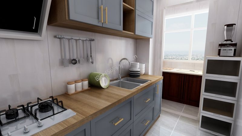 87平米现代风格二居室厨房橱柜台面装修效果图