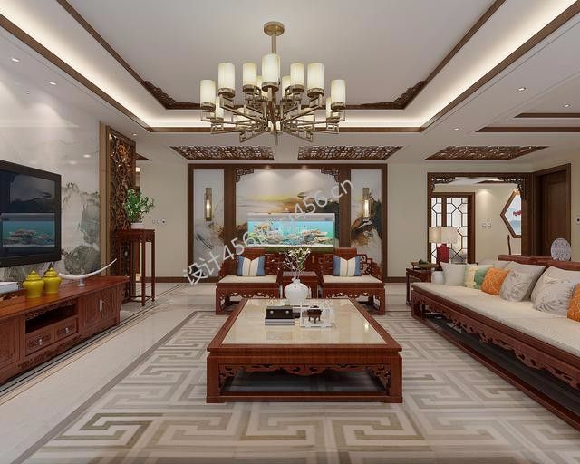 西安简尚装饰 水晶·新天地中式风格185平米三居室装修案例