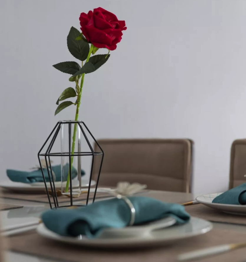 本案业主是一对90后小年轻,对于风格的追求偏向清新淡雅的北欧风,大量使用低饱和度的清新配色,柔软的材质,通过一支妖冶、热烈的红玫瑰,向人娓娓道来一个清新的爱情故事。