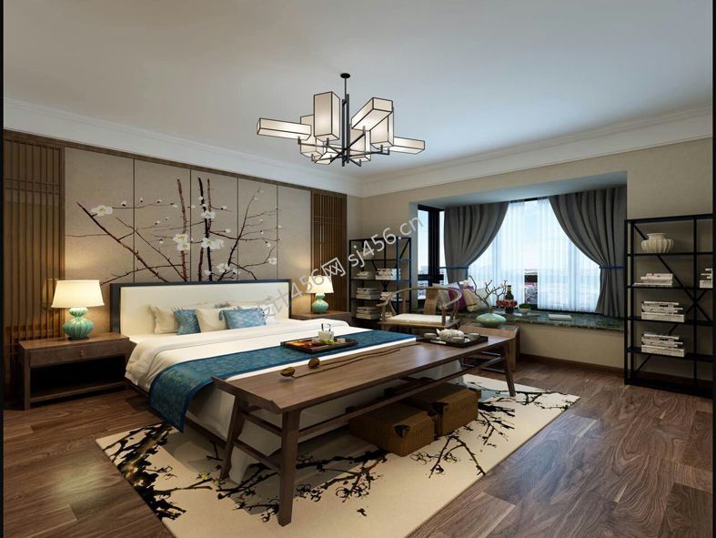 万科金域100平米新中式风格三居室装修案例风效果图
