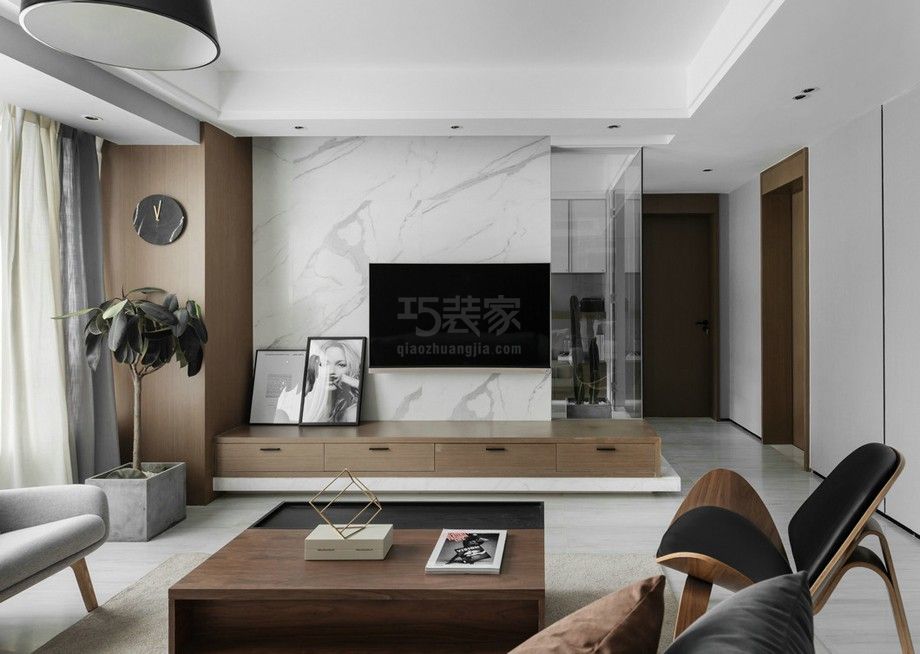 09-27西安今朝装饰公司原创设计作品;西安今朝装饰公司从设计到施工和售后一站式服务模式;西安今朝装饰公司130平北欧简约风格装修设计效果,灰白原木色搭配;