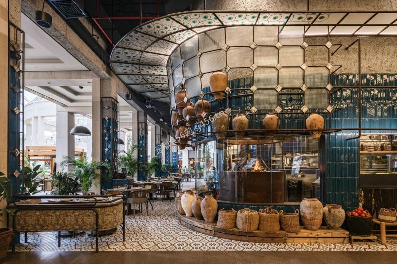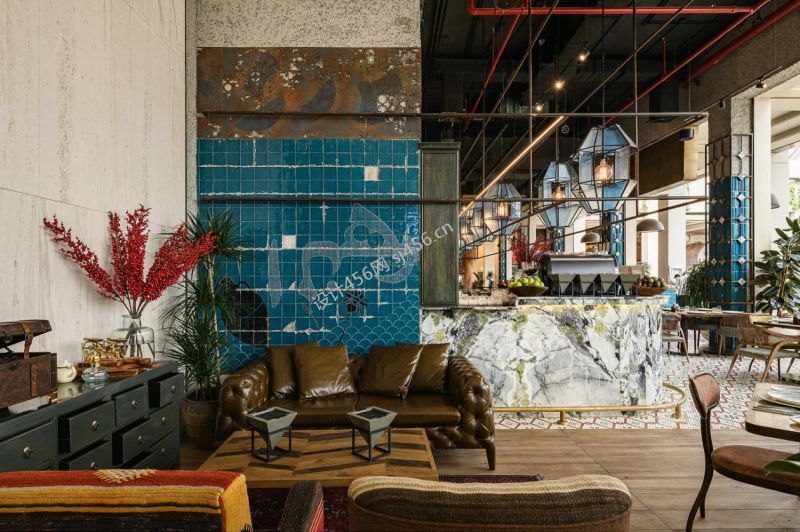 300平米异域风情餐饮空间地面瓷砖装修效果图