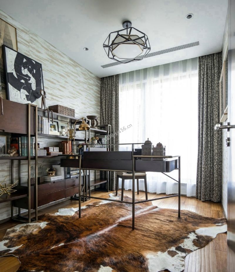 142平米复古风格书房装修设计图片