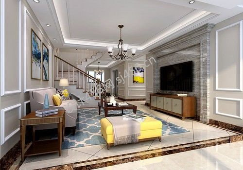 别墅256平方美式风格客厅设计图赏析