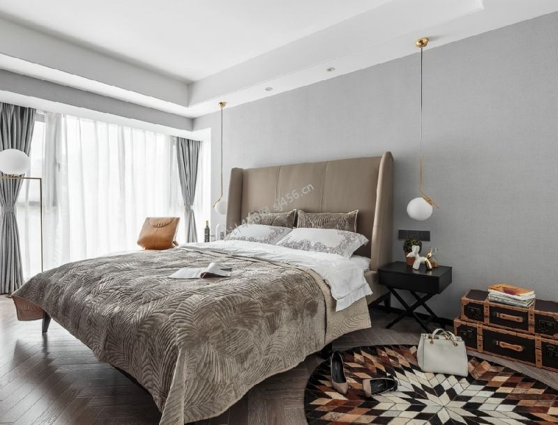 三居121平方现代风格卧室床设计图