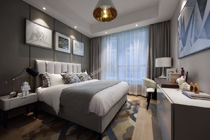 汇林华城A区92平米现代轻奢三居室装修案例风效果图