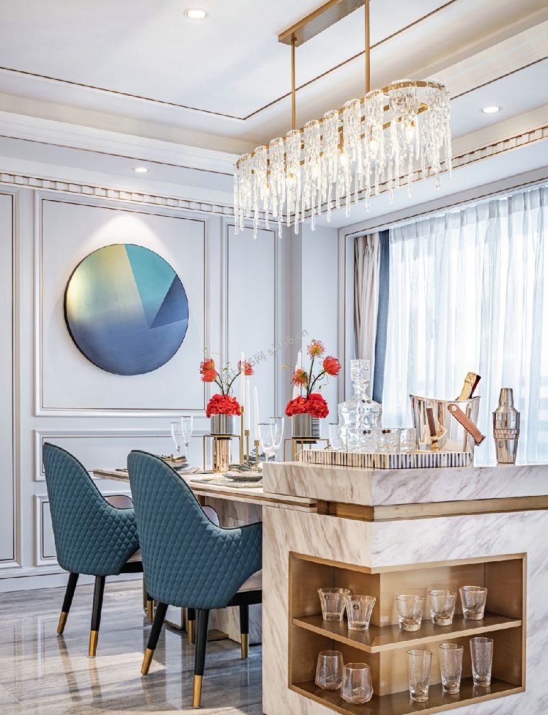 西安美庭四季装饰 紫郡长安四居135平现代轻奢风格装修案例